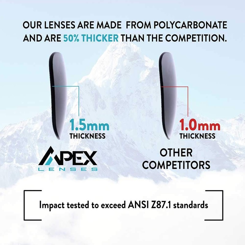- ✔ Apex Lenses are Thicker and are Amazing Quality - 1.5mm lens thickness (50% thicker than the competition)