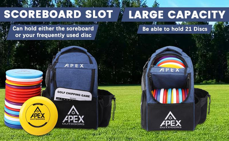 Apex Outdoors Disc Golf Bag, Disc Golf Backpack with 20+ Disc Capacity, Durable & Lightweight Disc Golf Bags with Multiple Storage Pockets (Blue)