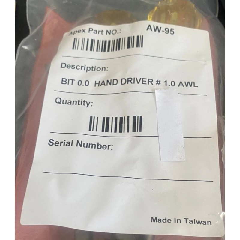 - Manufacturer Part Number: AW-95 Bit0.0 Hand Driver #1.0 SWL