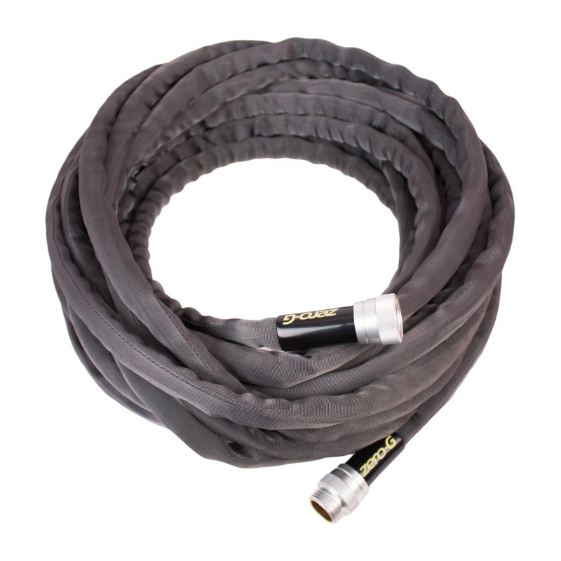 Size:5/8" x 100' The zero-G hose is the future of advanced hose design. Compared to traditional hoses, the zero-G is 50% lighter in weight which assures effortless handling & easy maneuvering. The zero-G is easy to store, has a high burst strength, (over 600 PSI) & is kink-resistant. This hose has the same flow rate as a 5/8" conventional hose, & is cold weather flexible down to 35 Degree. the zero-G features newly designed, ergonomic, crush proof couplings for long-lasting, leak-free attachments. zero-G is lead free & glides smoothly over surfaces without marring or snagging. 5 year warranty & assembled in the USA.