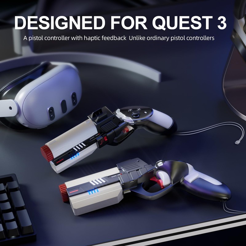 APEXINNO Handle Attachments for Quest 3S Meta Quest 3 Accessories Haptic Pistol & Grips for Immersive FPS Action, Simulated Pistol Realistic Sensation, Full Protection - Complete VR Gaming Sensation
