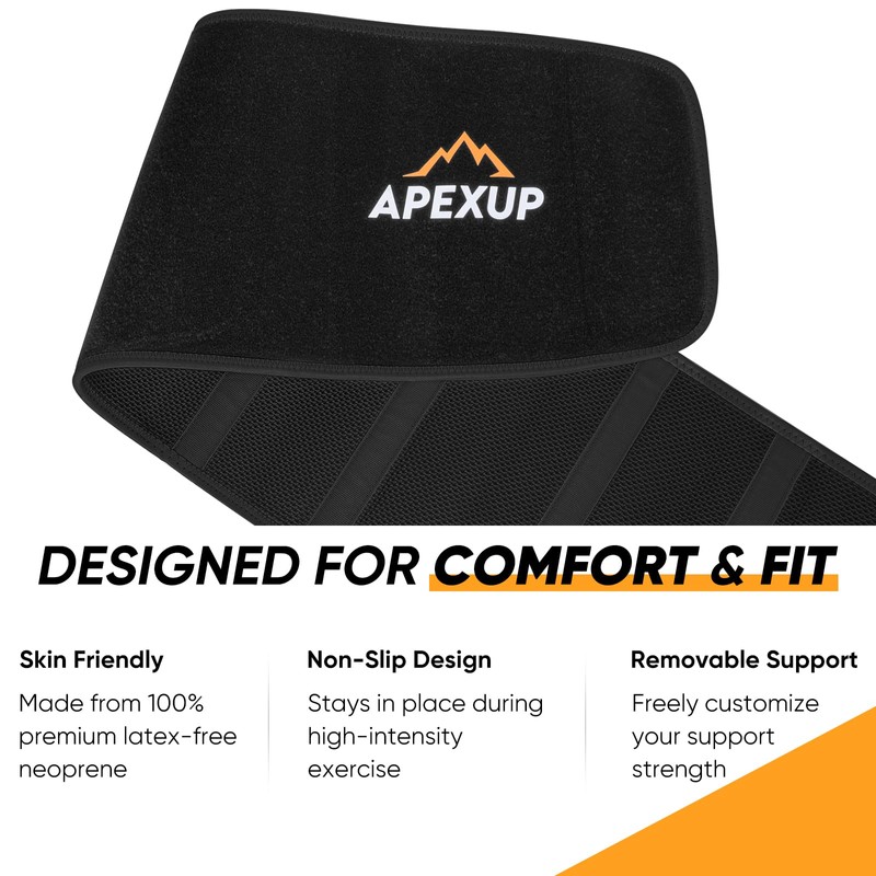APEXUP Sweat Waist Trainer for Women and Men, Neoprene Waist Trimmer Belt Slimming Sweat Band Stomach Wrap with Removable Lumbar Support Bar for Workouts (L, Black)