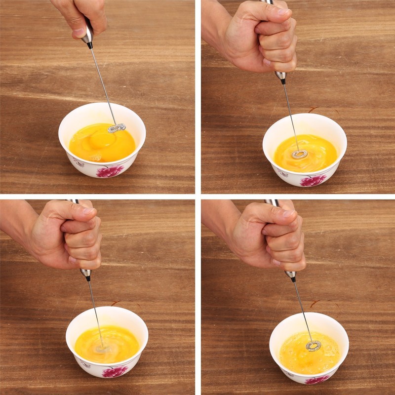 - WHISPER QUIET - Foam maker for coffee. Keeps your morning calm and peaceful while you are creating your hot coffee milk frother masterpieces.Built with a powerful yet whispering-quiet motor.This cute little wand foamer silently whips up rich,smooth and delicate foam for homemade coffee drinks in seconds.Requires 2 AAA batteries (not included).