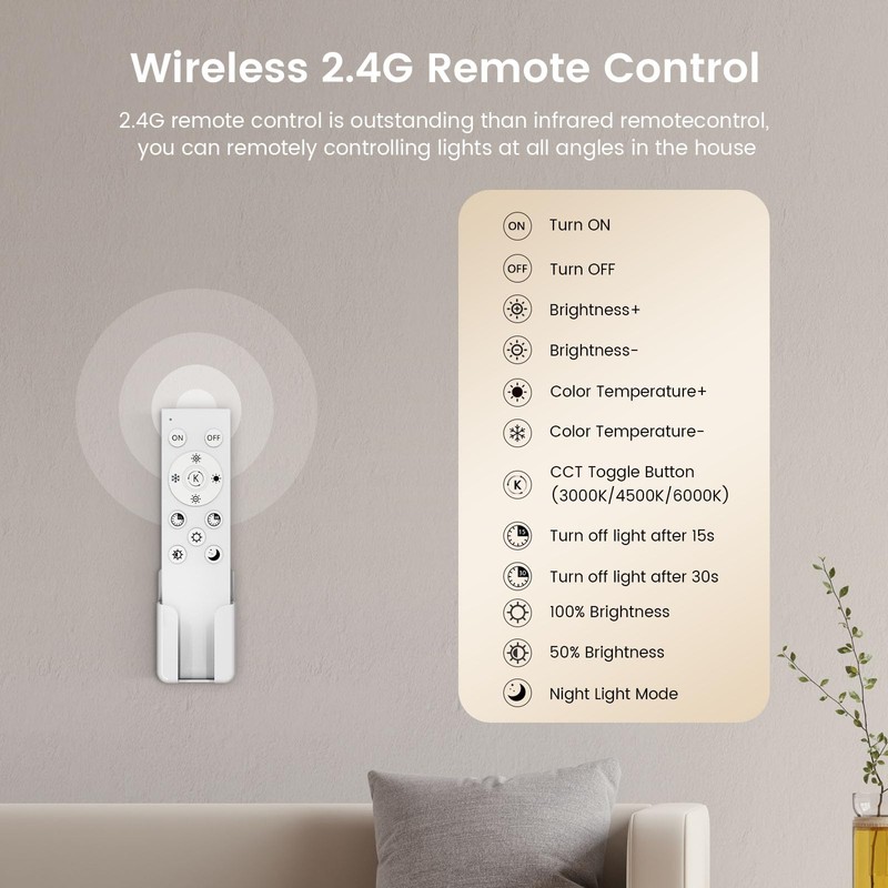 - 【Adjustable 3 Color Temperature】 This ceiling lights for living room can adjust the color temperature from 2700~6000K through the mobile APP or remote control. You can also switch to the fixed 3000/4500/6000K color temperature mode through the remote control and wall switch.