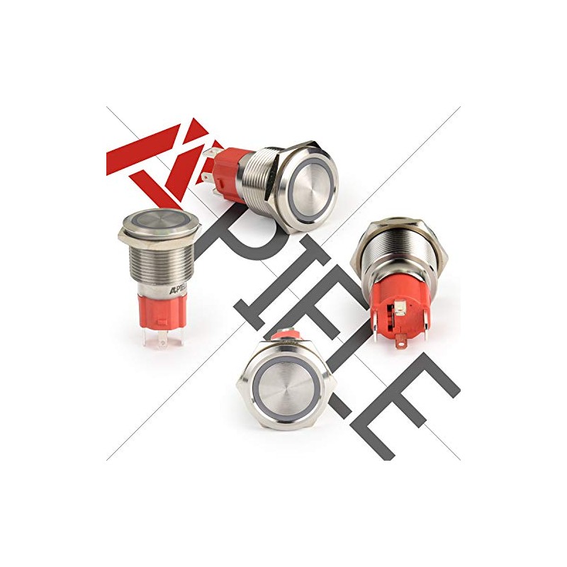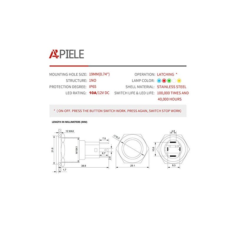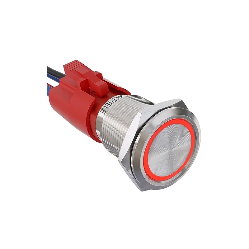 - Brand New 10A 19mm Latching Switch; Ring LED Push button Switch; LED voltage: 12V only, Hole size required: 3/4'/19mm