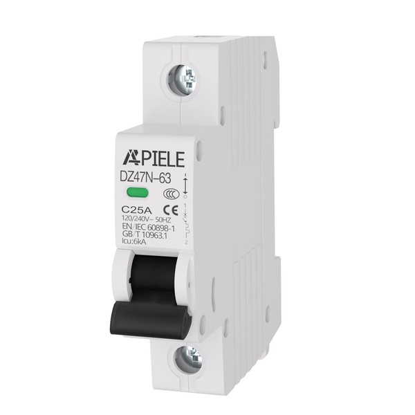 APIELE Miniature Circuit Breakers AC 120/240V, 25Amp 1Pole Circuit Breaker for Solar Photovoltaic Systems, DIN Rail Mount AC Disconnect Switch (1P-25A)
