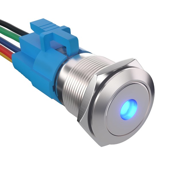 APIELE Push Button Switch 19mm Spot Light Latching Stainless Steel Push Button 12V-24VDC with Wire 1NO 1NC(19mm, Blue)