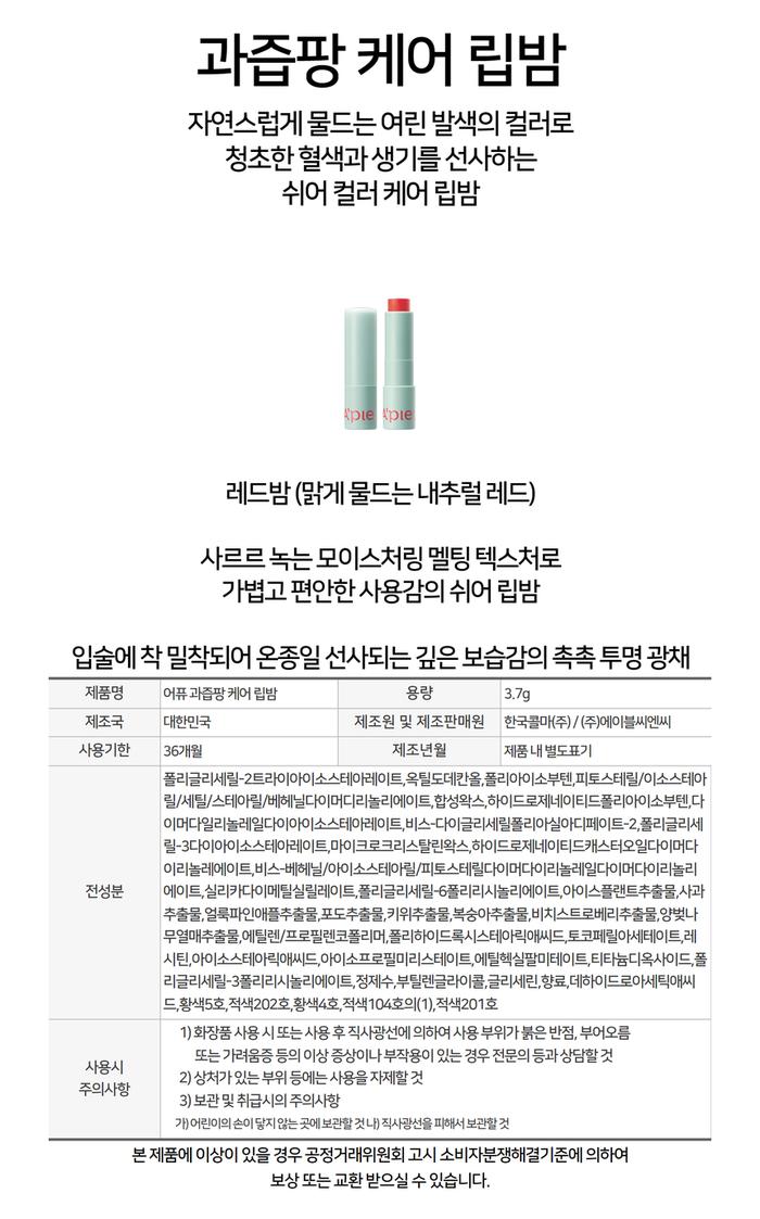 어퓨 과즙팡 케어 립밤 (레드밤) 3.7g