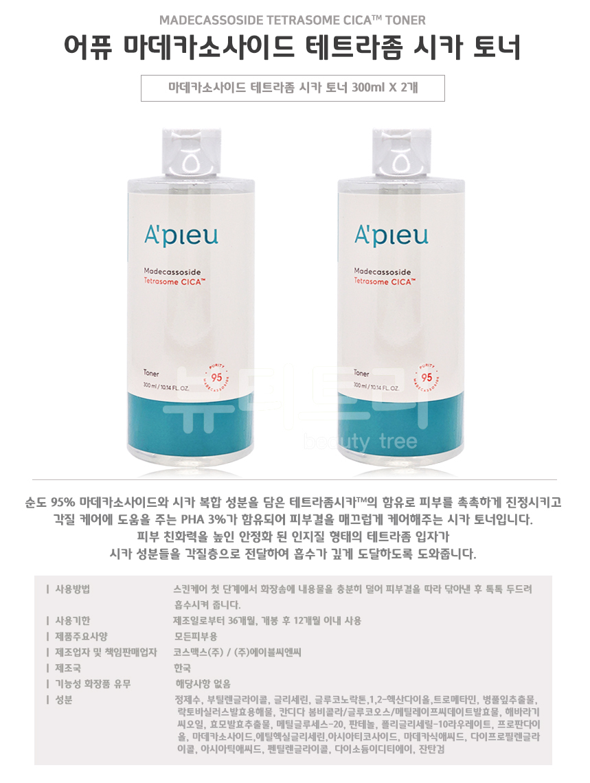 Apieu Madecassoside Tetrasome Cica Toner 300ml + 300ml / 어퓨 마데카소사이드 테트라좀 시카 토너 300ml + 300ml