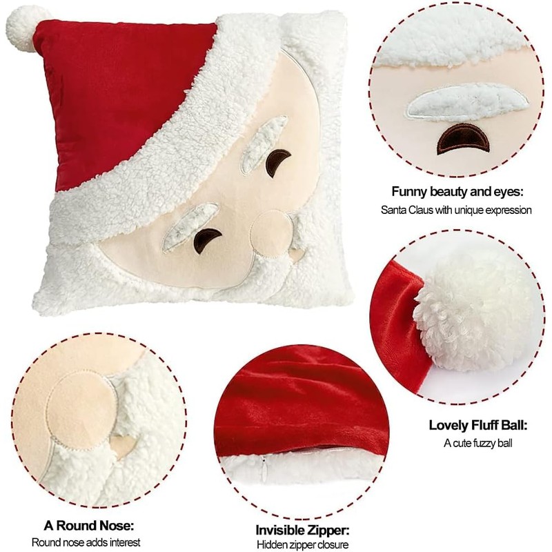 - 【Fun Santa Cartoon Design】we design one kind of Santa Claus model, oversized cartoon Santa's head makes the pillow case more cute and lively;Wonderful Xmas decoration for indoor and outdoor use, which can be used on sofa, chair, couch, car, bed, office, etc.. best gift for your family and friend as house warming gift. not only Ideal for Christmas party, birthday, spring event, anniversary but also daily use.