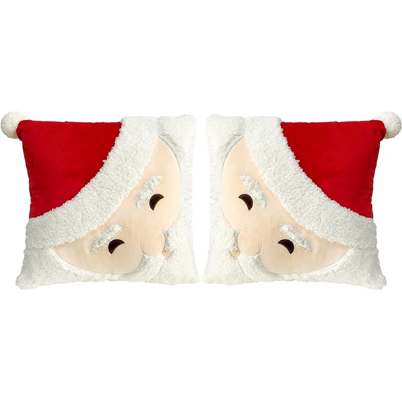 - 【Great Idea for Christmas Decor】Our Christmas cushion cover can help you to change Christmas decorations quickly. This Christmas throw pillow cover will refresh your room, the 2 pillowcase with close-up smile cartoon Santa Claus are so cute and fun, they are easy to mix and match with other Christmas decorative pillows or holiday decorations.