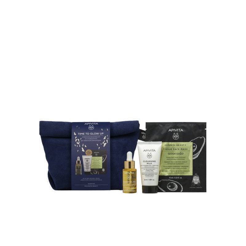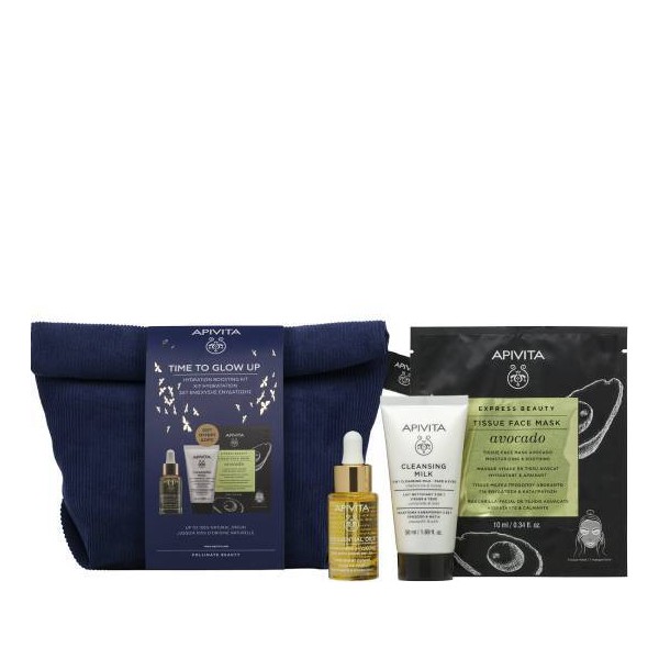 Apivita Time to Glow Up Day Face Oil Strengthening & Hydration, 15ml & FREE 3 in 1 Cleansing Emulsion for Face & Eyes, 50ml & Avocado Facial Tissue Mask, 20ml