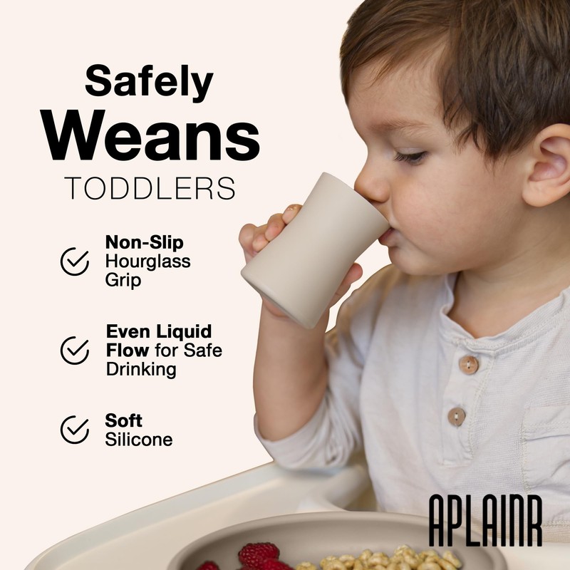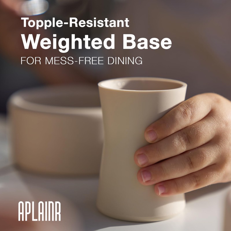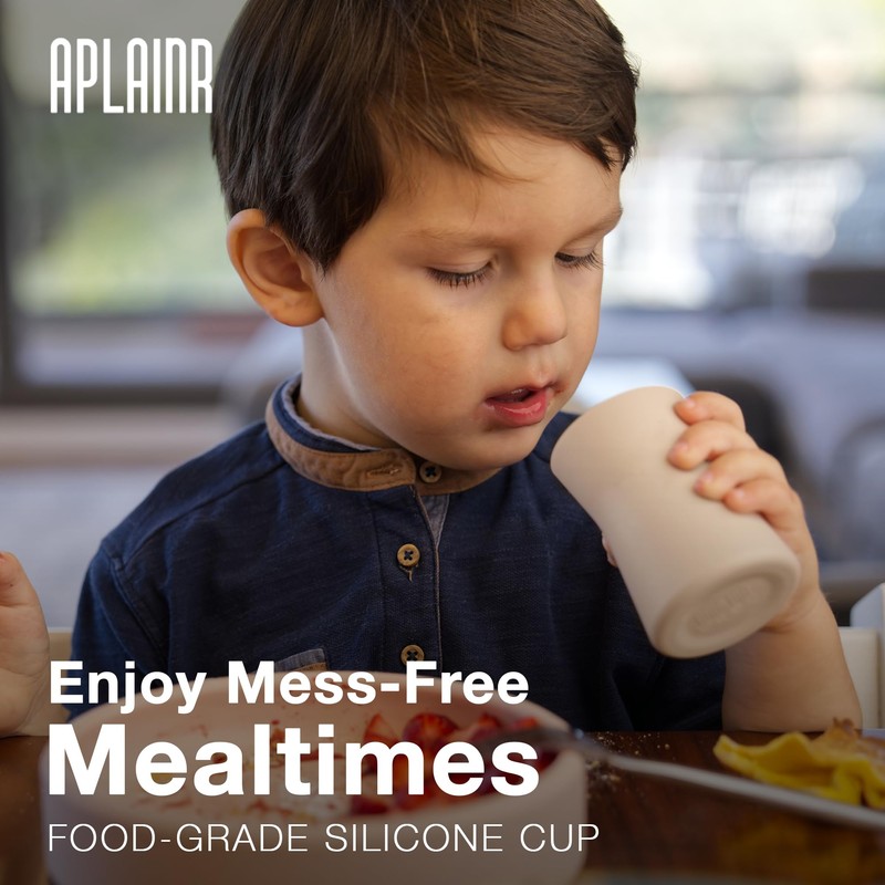 Strengthen your bond with your little ones over meals with APLAINR baby-led weaning supplies. Cherish nurturing mealtimes together every time! No More Messy Meals Together! The thoughtful design of our training cups promotes peaceful mealtimes. Its weighted base provides stability, reducing the chances of knock-overs, and encourages independence. Enjoy a more relaxed and enjoyable dining experience with your little one! Respectful Guidance, No Restrictions As your child transitions from a bottle to a cup, our silicone drinking cup helps make this journey smoother and mess-free. It features an hourglass profile that offers a secure non-slip grip, ensuring that self-feeding is a frustration-free experience for your little one. With this open cup, you can encourage their development while minimizing spills and accidents during mealtime. Safe & Controlled Drinking Our silicone training cup for baby is a valuable tool for your child's development and a convenient choice for parents. It's smartly designed with a unique interior profile to ensure even liquid flow for safe drinking. Regardless of how much liquid is inside, the liquid flow begins at a safe and comfortable head position for your child. Safe. Convenient. Practical We marry safety, convenience, and practicality in our silicone cups. They’re made from 100% premium food-grade soft silicone and are free from BPA, BPS, PVC, lead, phthalates, or cadmium. Our toddler open cups are also microwave and dishwasher-safe, making reheating and cleaning a breeze — all because we understand the struggles of every mother! 4 Beautiful Colorways Take your pick from these cups in subtle, lovely hues: Blue Hour Pink Sand Oat Cream Matcha Green For silicone tableware, choose APLAINR – where peaceful mealtimes start!