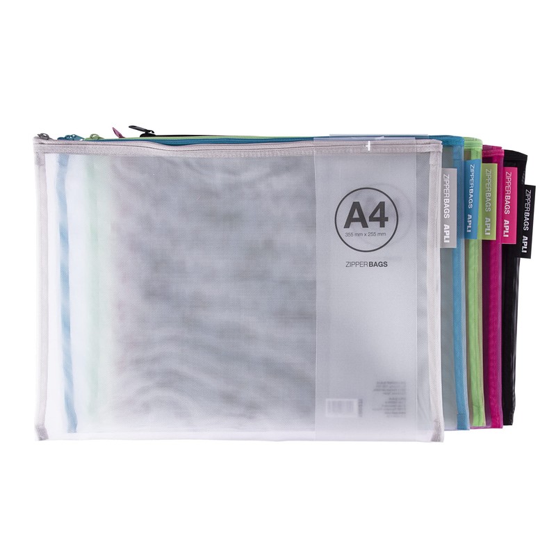 APLI 18027 – Nylon Bag – Zipper Bag – Breathable Nylon Pencil Case – A4 – 355 x 255 mm – Random Colour