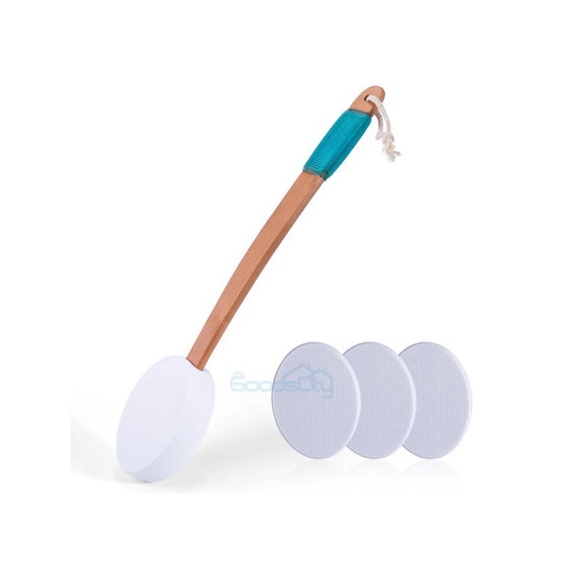 Aplicador de loción para esponja de ducha autolavadora trasera con mango largo