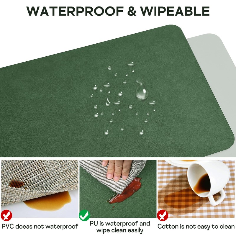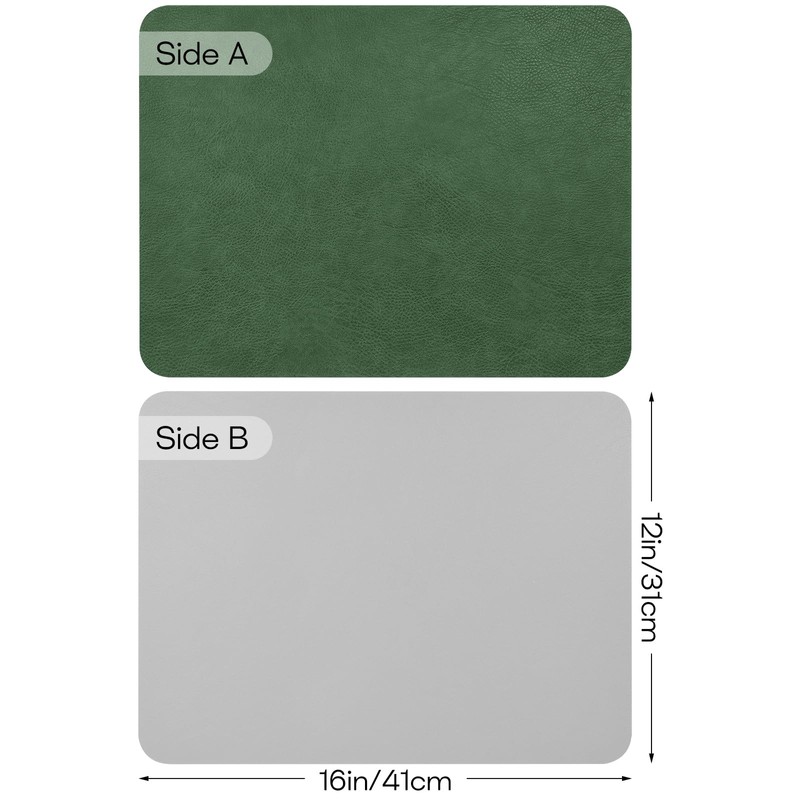 APLKER Faux Leather Placemats Set of 6 Table Mats Heat Resistant Reversible Place Mats, Waterproof Wipeable Dining Table Place mats for Home Party Outdoor, 12 x 16 Inch (Green/Grey, 6)