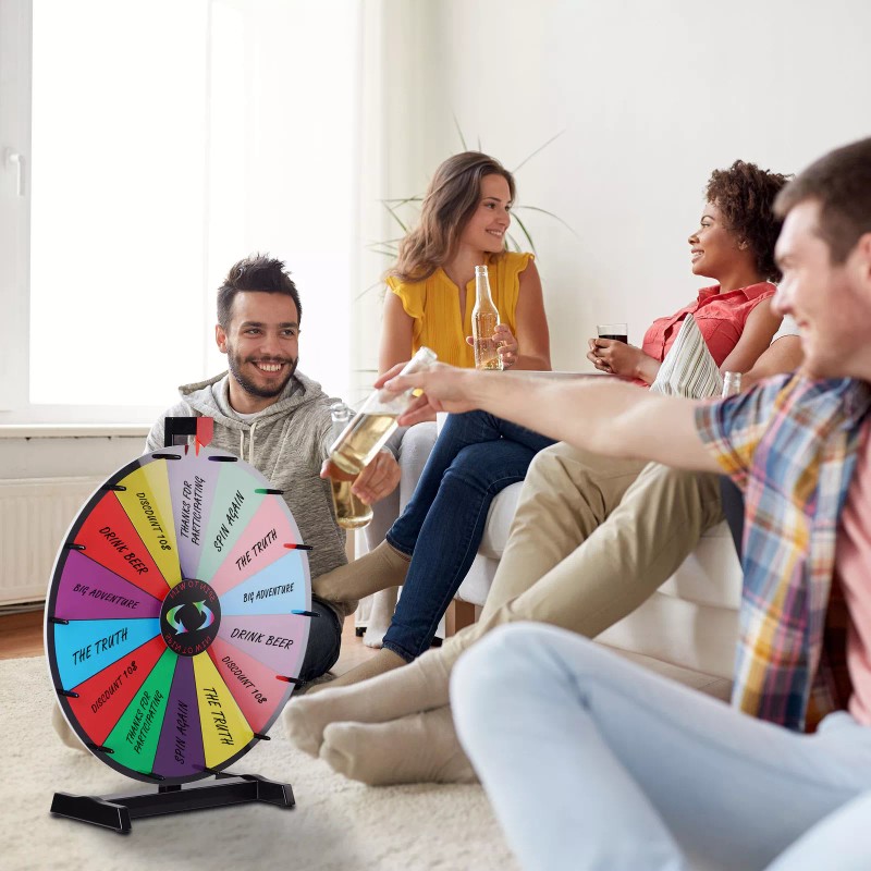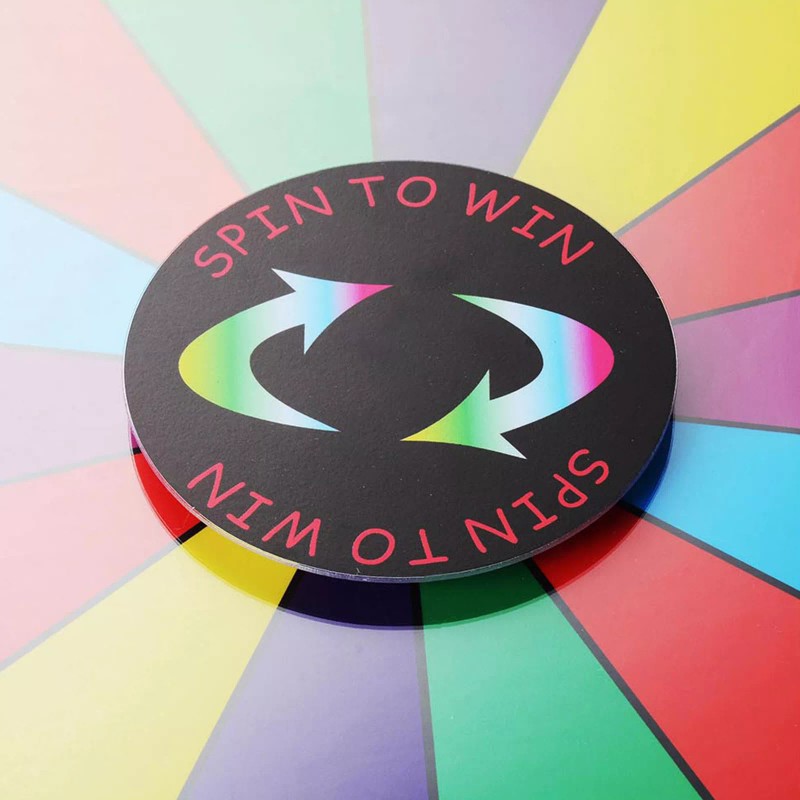 - Colorful Prize Wheel - WinSpin 24" Tabletop Spinning Wheel with 14 acrylic slots features vivid rainbow-like color for pleasant and eye-catching display to draw attention, perfect for party, holiday activities, carnival, tradeshow, annual meeting, company events and more