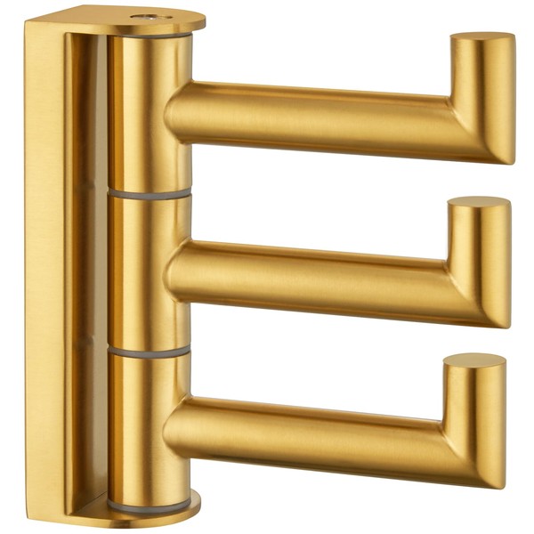 APLusee Swivel Towel Hook, 304 Stainless Steel Foldable Clothes Hook with Multi Three Rotating Arm, Flexible Bathroom Kitchen Storage Hanger Wall Mounted, Brushed Gold