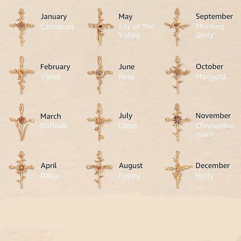 - [Cross Necklace] This gold necklace features a striking birth flower pendant, creating a simple yet stylish jewelry in the shape of a cross. The wearing of birth flower jewelry is thought to bring good luck, good health, and protection; birth flower cross necklace is not only a beautiful and meaningful gift, but also the blessing and the best wishes