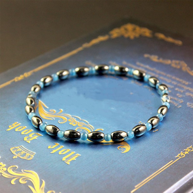 Apocalyptic-K Colourful Magnetic Anklets for Women, Pack of 2, 6MM, Anti-Static (Blue Cat's Eye & Magnet,6MM)