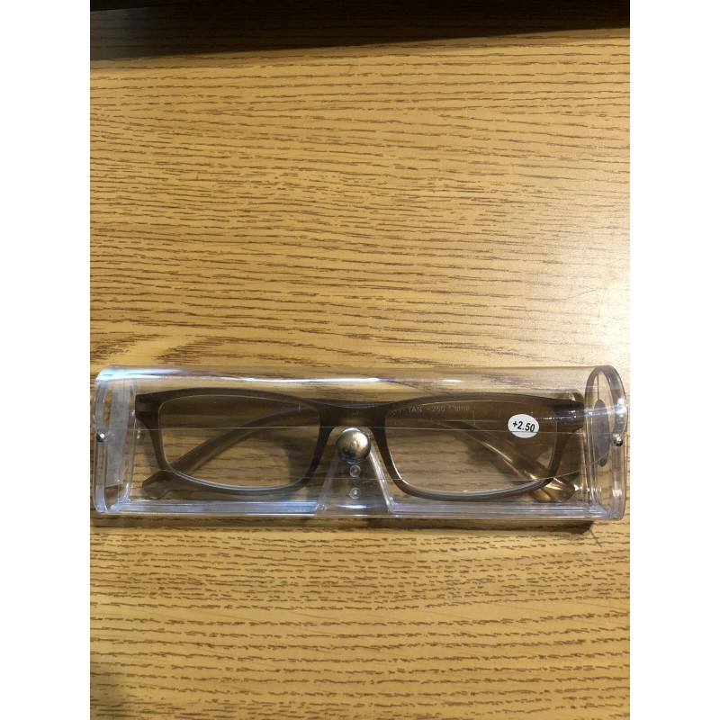 Apollo Reading Glasses +2.50 Tan with Clear Cases Fast Shipping (Laq-2.50-2)