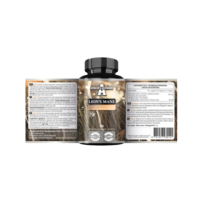 - EXCEPTIONAL VALUE FOR YOUR INVESTMENT: Apollo's Hegemony Lion's Mane capsule package includes 90 vegan capsules. Each capsule offers 300 mg of high-quality Lion's Mane extract at a 10:1 concentration with a minimum of 30% polysaccharides. Recommended dosage is 1 capsule, making each package last for a full three months.