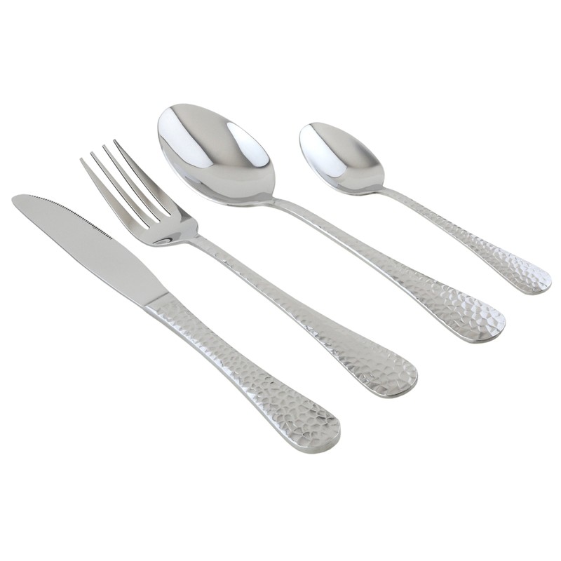 APOLLO Stainless Steel Martele Cutlery Set, Set of 16, Silver, 4024