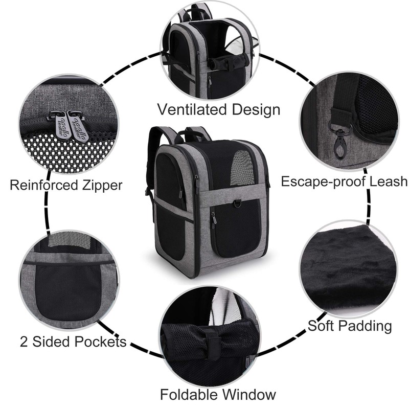- ESCAPE PROOF- The last thing you want is an escaped pet running around the airplane cabin or outdoors. APOLLO WALKER pet backback carrier keeps your pet safe and secure while flying, walking, cycling, or hiking with claw-proof mesh and zipper buckles. Carrier also has a leash tether to attach to your dog or cat’s collar if you decide to open the top window to let your pet stick their head out.