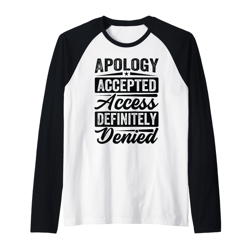 Apology Accepted. Access Definitely Denied. - Funny Raglan Baseball Tee