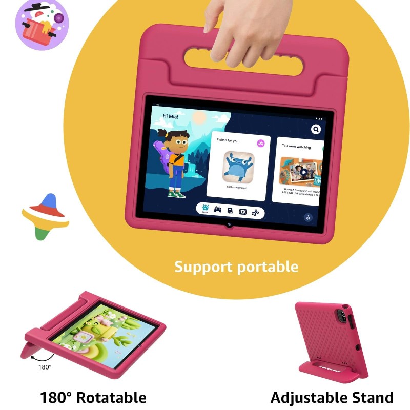 - DURABLE CASE FOR KID-FRIENDLY USE:The included shockproof case safeguards the tablet from accidental drops and scratches. With an adjustable stand, kids can enjoy hands-free use, making it perfect for studying, watching videos, or creative play.