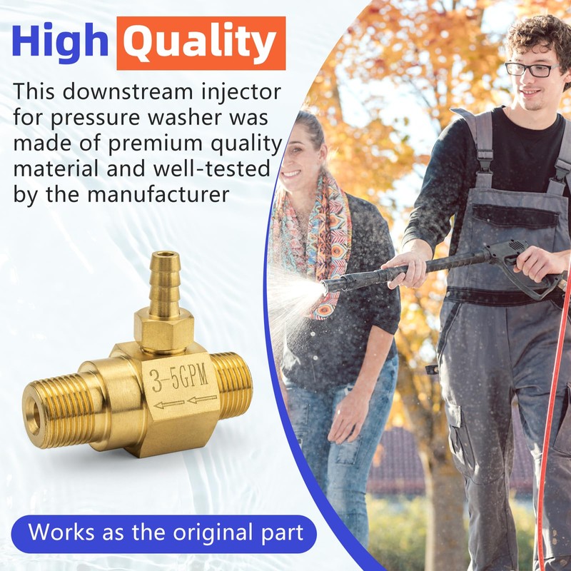 Apopip 100775 Downstream Injector for General Pump 3-5 Gpm Chemical Injector, Pressure Washer Soap Injector Contains Threaded Tape