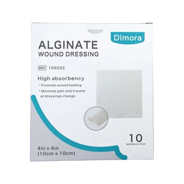 Dimora Apósito de alginato de calcio: 4 x 4 pulgadas, 10 paquetes estériles individualmente sellados.