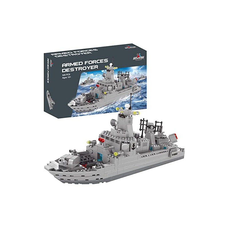 Apostrophe Games Navy Destroyer Building Block Set - 528 Pieces - Building Block Set for Kids and Adults - Compatible with All Building Bricks