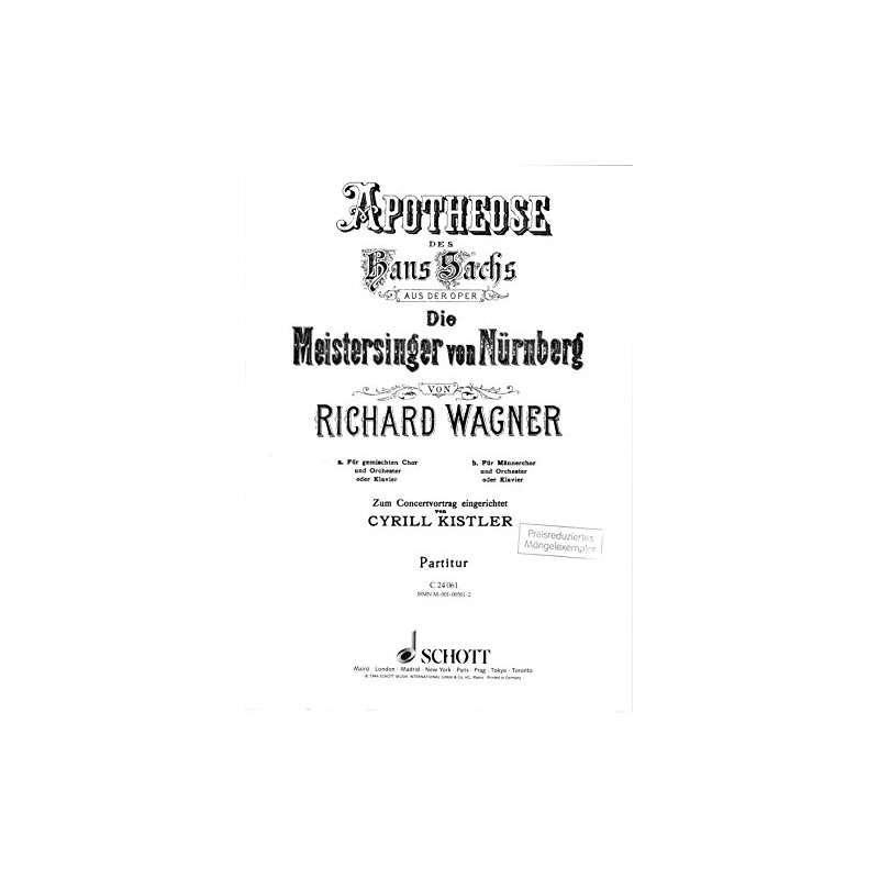 Apotheose des Hans Sachs: aus "Die Meistersinger von Nürnberg". WWV 96. mixed choir (SATB) or men's choir (TTBB/TB) and orchestra. Partition.