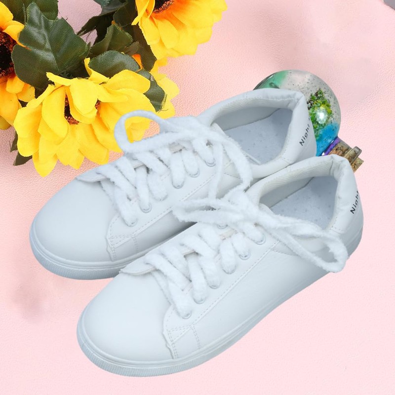 Apoukmty 2 Pairs Flat Fuzzy Shoe Laces, Soft Hairy Plush Shoelaces,for Sneakers, Casual Shoes (white)