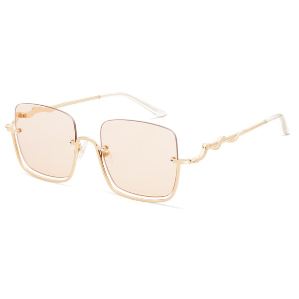 Appassal Oversized Snake Sunglasses for Women Men Large Rectangular Y2K 90s Glasses Sunnies AP3687,Light Gold/Light Brown