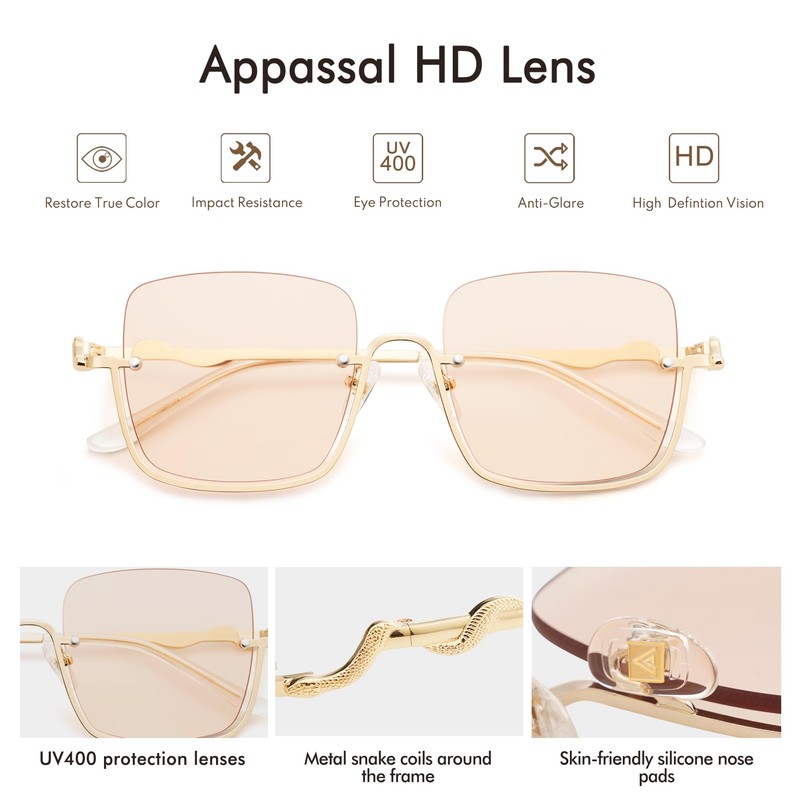 - FASHION SNAKE SUNGLASSES - Retro snake sunglasses arrives with a semi rim metal frame and bold temples. The distinctive sinuous snake detail continues to be a distinguishing feature of Appassal's collections and appears along the temples. No matter in daily life or at party, this trendy mens snake sunglasses for women will be the highlight 90’s y2k glasses.