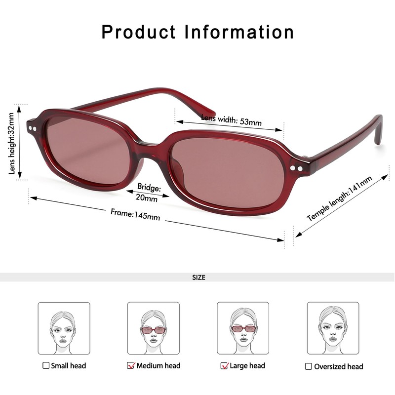 • SMALL RECTANGLE SUNGLASSES - Vintage square sunglasses for women is a lightweight frame that looks great on everyone. Thin, adjustable temples make for a comfortable fit on a wide range of head sizes.