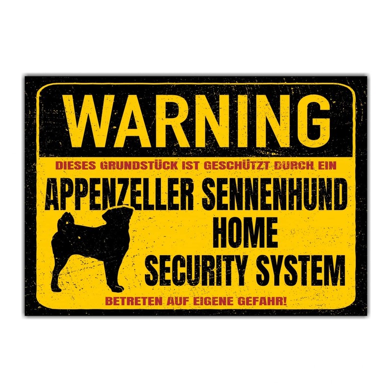 - Great attention door sign dog motif: this property is protected by an Appenzeller Mountain Dog - Home Security System! The dog sign for your door or garden fence. Weatherproof and UV-resistant printed with great dog motif in the latest UV printing process. Siviwonder