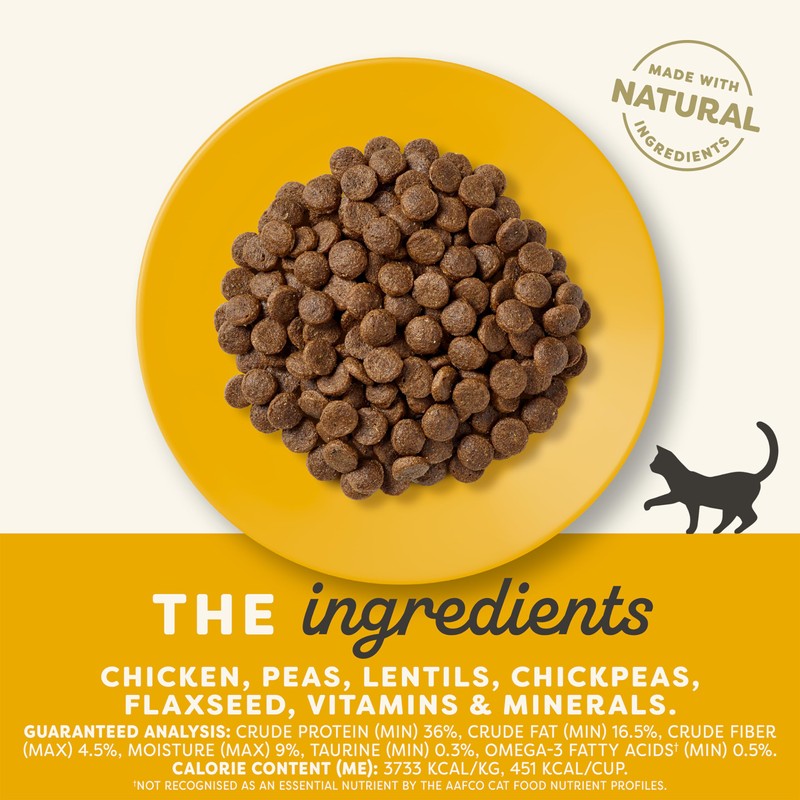 - Happy, Healthy Cats: Carefully crafted recipe that provides an excellent level of complex natural carbohydrates to help keep your cat healthy and active. Made with rich energy sources such as Peas, Lentils, Chickpeas, and Flaxseed.