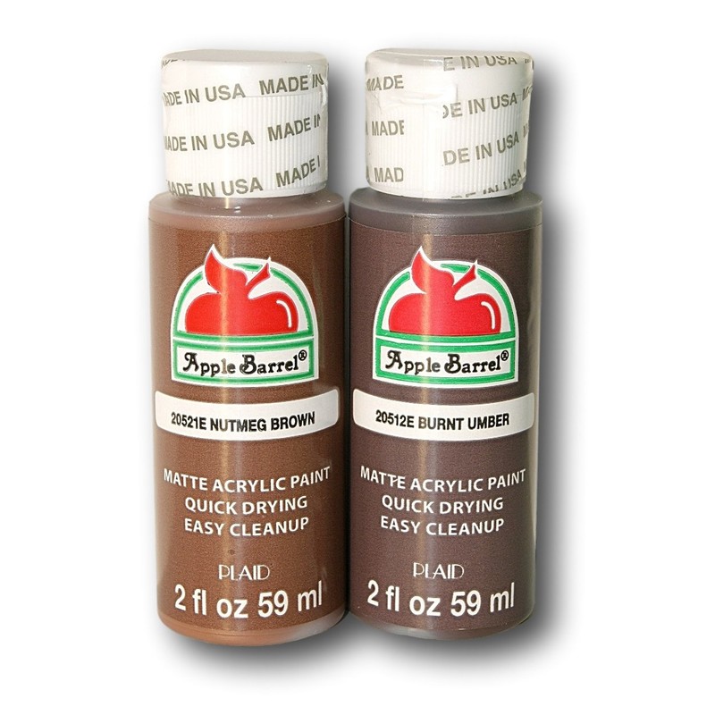 Apple Barrel Brown Acrylic Paint Set Bundle - Nutmeg Brown & Burnt Umber (2 Ounces Each)