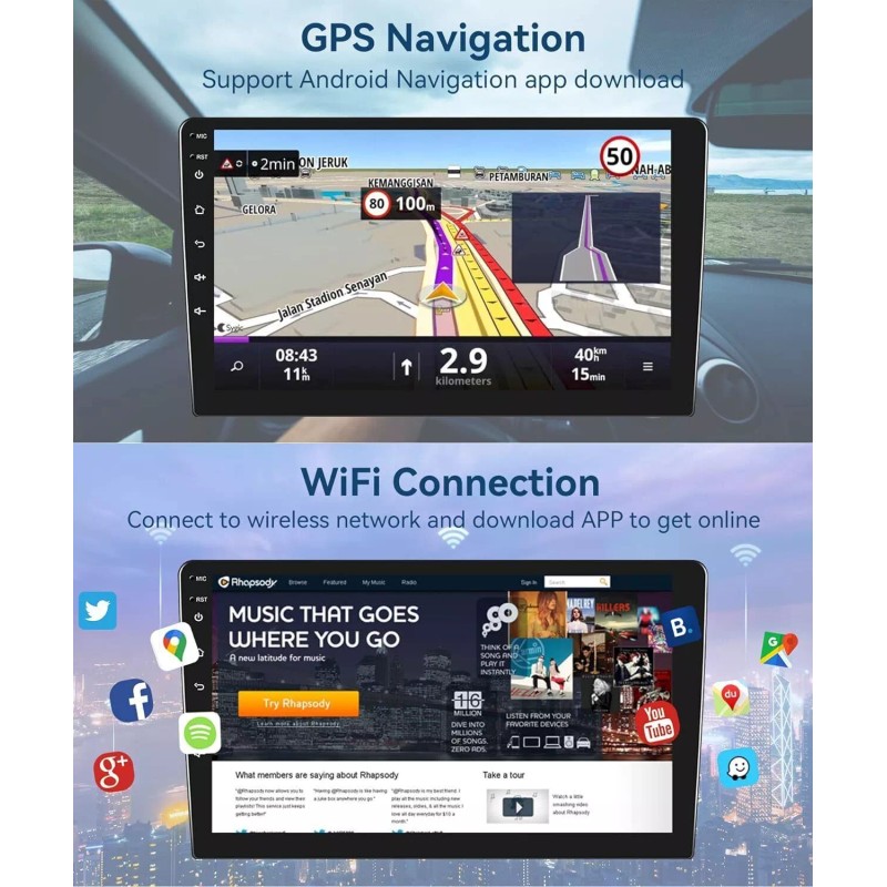 ●Built-in GPS Navigation: Users can purchase directly from play store for offline navigation. With wifi connected, Google Maps can be used perfectly, you can go anywhere you want and never get lost again.●High definition 1280P: Full capacitance touch screen for easy operation, well designed user interface for car only.