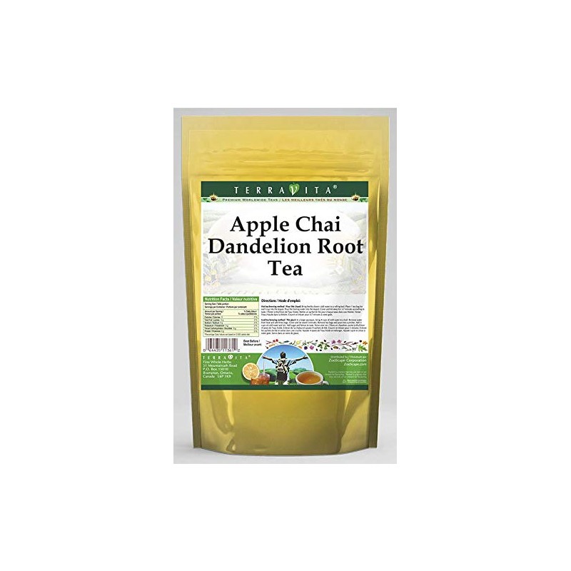 - Our Apple Chai Dandelion Root tea is a delicious naturally flavored Dandelion Root coffee substitute with Apples (Dried, Diced, Natural), Cinnamon Chips and Cloves that you will enjoy relaxing with anytime! The natural and caffeine-free Apple Chai taste is delicious! - Ingredients: Dandelion Root, Apples (Dried, Diced, Natural), Cinnamon Chips, Cloves and Natural Apple Chai Flavor.