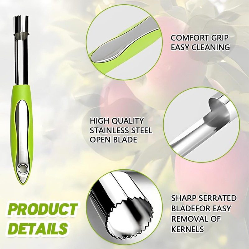 Apple Corer, Apple Cutter with ABS Handle, Practical Apple Core Cutter, Food Grade Stainless Steel Blade and Serrated Edge, Green