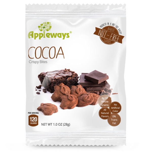 Appleways Whole Grain Cocoa Crispy Bites, All-Natural Individually Wrapped Crispy Chocolate Dark Cocoa Mini Bites, Made in USA, 108 Count, 1.0 Oz