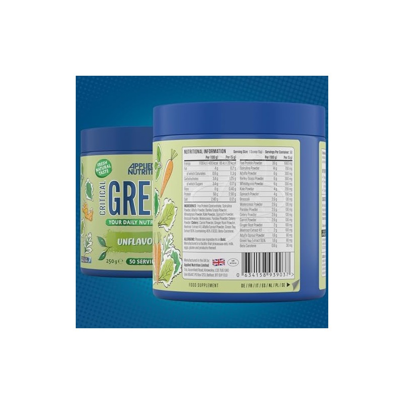 Applied Nutrition Applied Nutrition Critical Greens Powder and Superfood Blend for Gut Health Energy and Immune Support Vegan Daily Greens Juice Powder (250g - 50 Servings)
