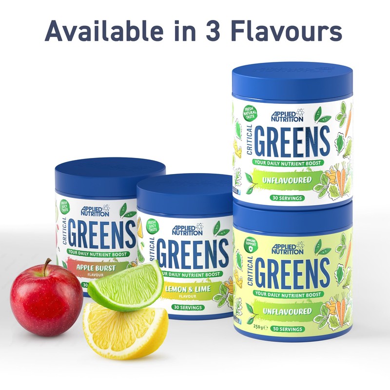 - Great Taste & Smooth Mixability C No Gritty or Earthy Texture C Available in Apple Burst, Lemon & Lime, and Unflavoured, this greens powder blends smoothly into water, juice, or smoothies, providing a refreshing daily boost without the grassy taste found in other greens supplements.