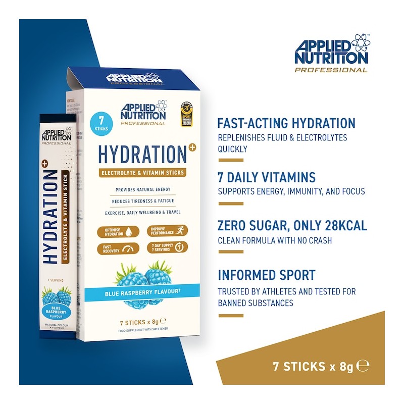Applied Nutrition Hydration+ Powder Sticks Blue Raspberry - 7 x 8g