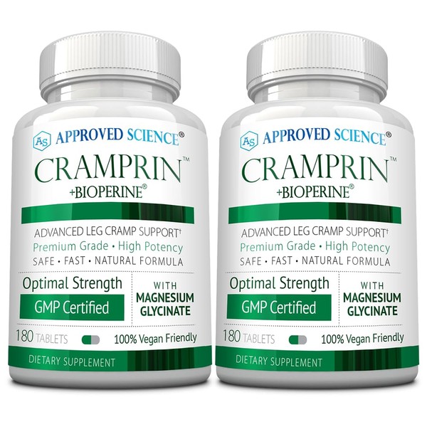 Approved Science Cramprin - High Absorption Magnesium, Vitamin B Complex, BioPerine - 6 Month Supply - 2 Bottles - Vegan