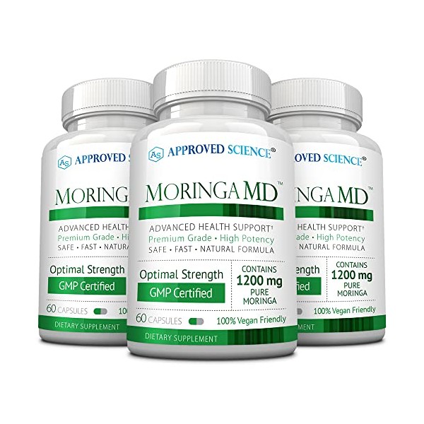 Approved Science® MoringaMD - 100% Pure Moringa Oleifera - 1200mg - Support Weight, Boost Energy, Balance Mood - 60 Capsules Per Bottle - 3 Month Supply - Non-GMO, Made in USA, Vegan Friendly